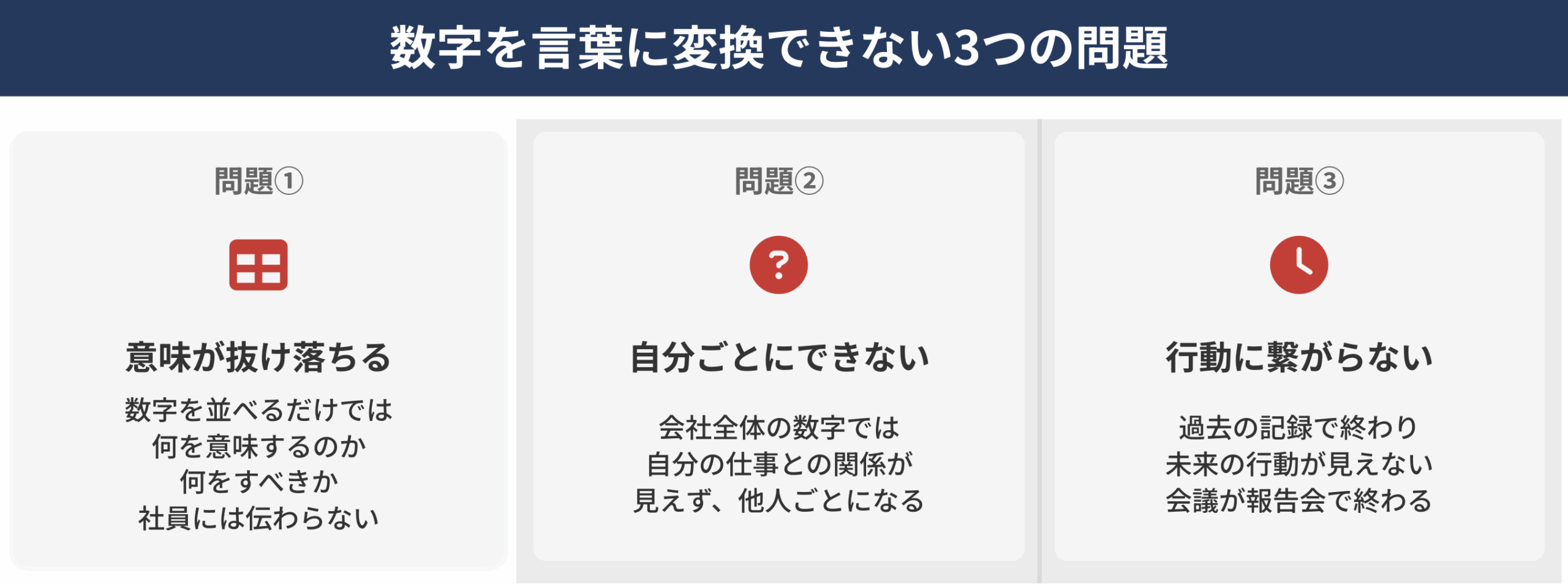 数字はあくまで「結果」です。その数字が「何を意味しているのか」「どんな行動を求めているのか」──それを言葉にしなければ、数字はただの数字のままです。
