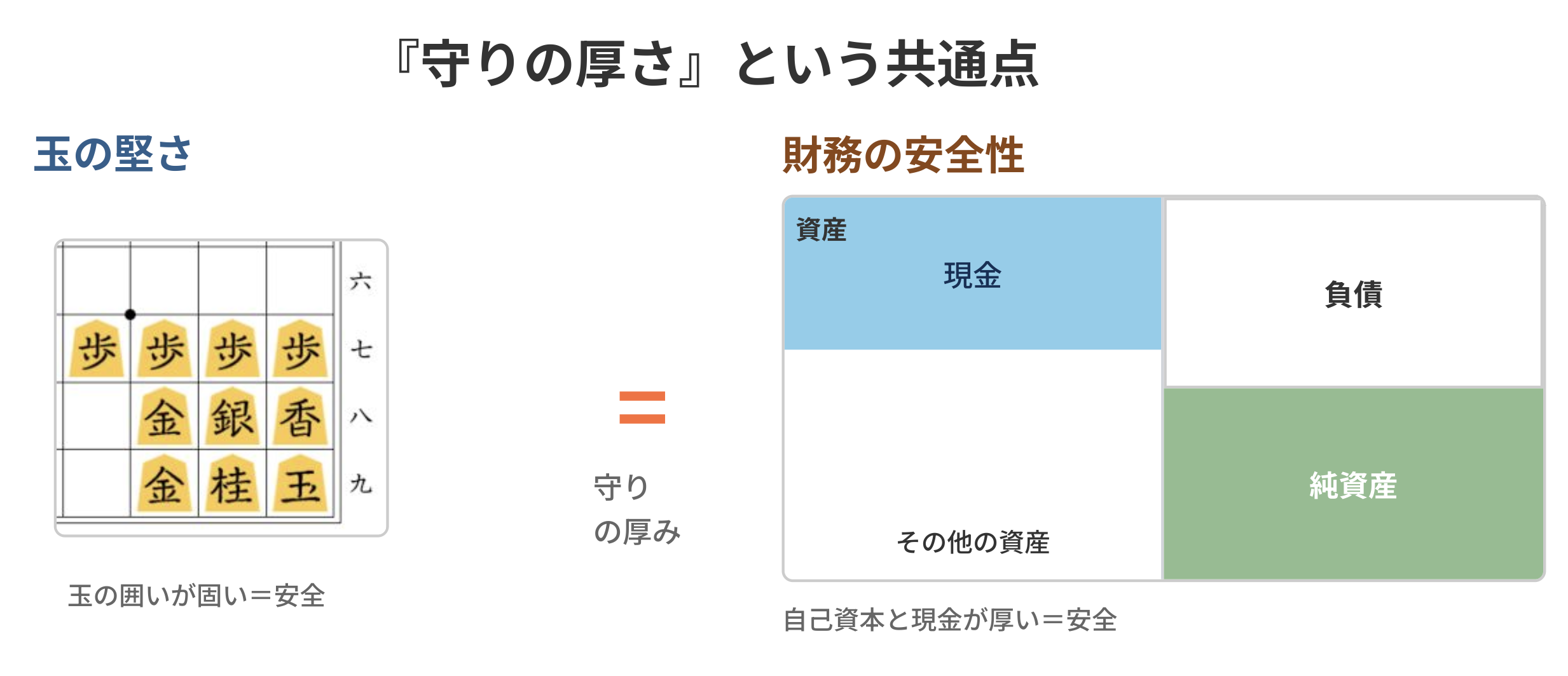 将棋で「玉の堅さ」を見るように、経営では「財務の安全性」を見ます。