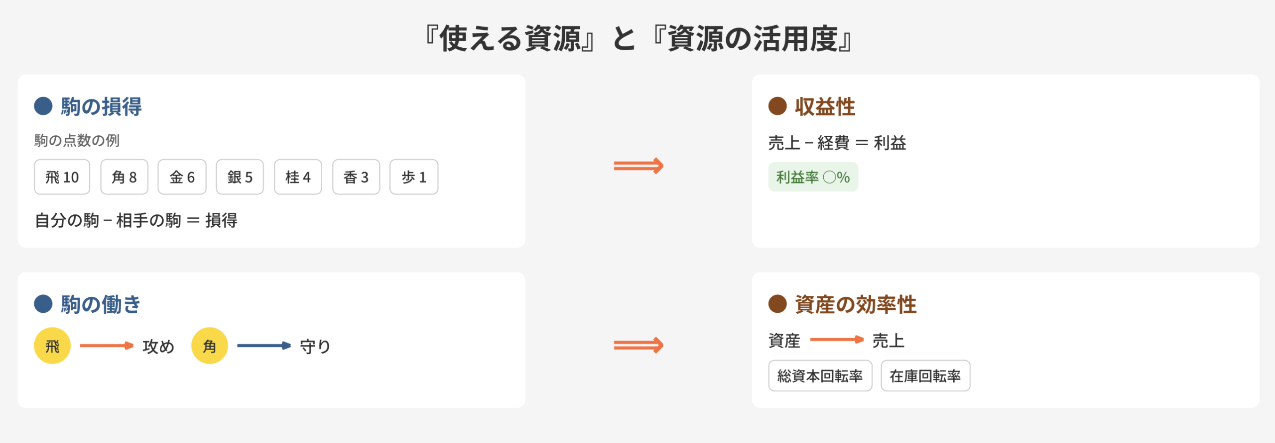 将棋で「駒の働き」を見るように、経営では「資産の効率性」を見ます。