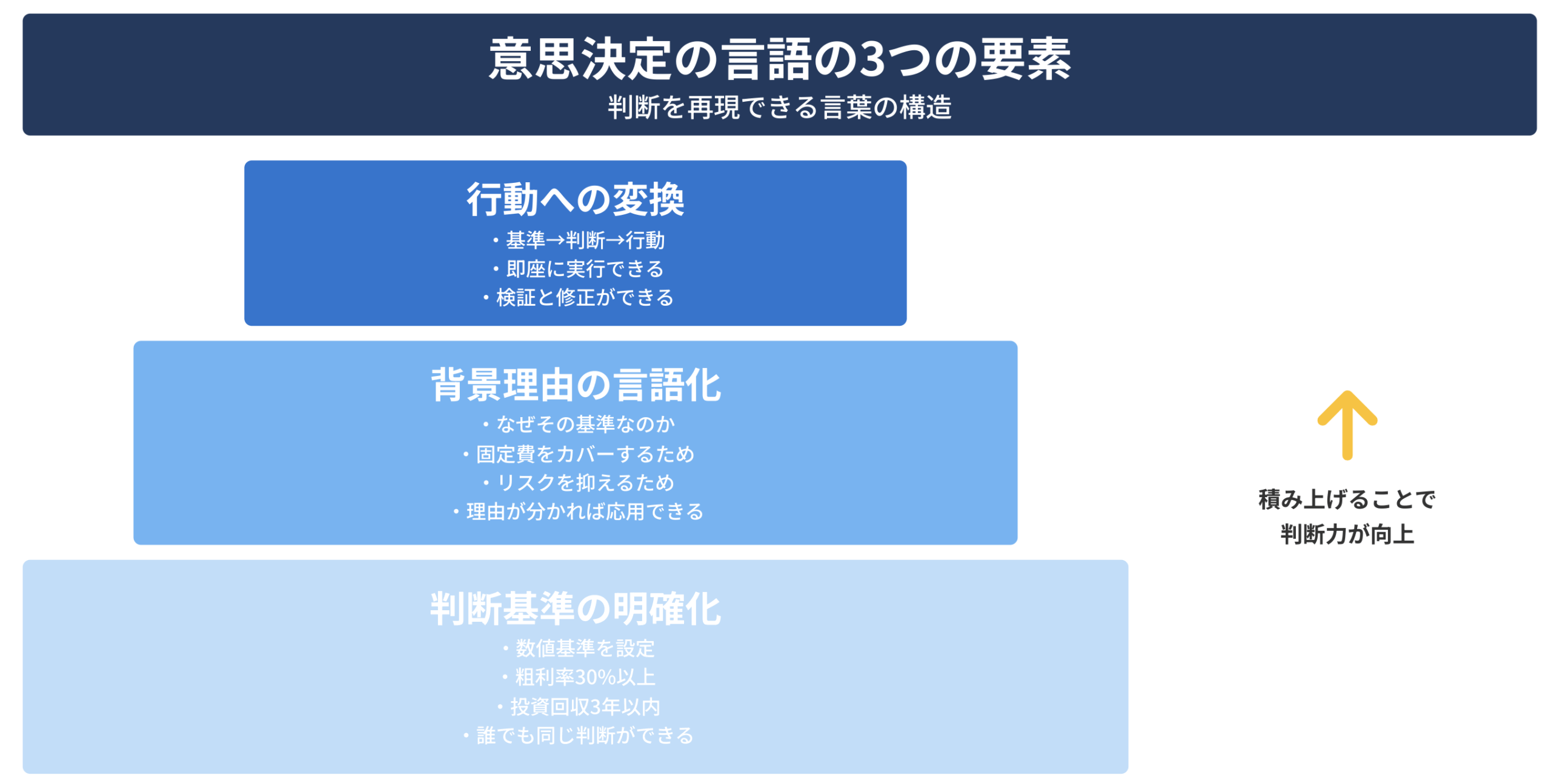「この状況では、このように考え、この基準で判断する」──それを言葉にしたものが、意思決定の言語です。