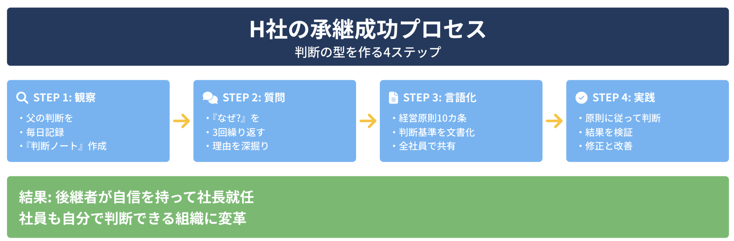 「H社長の判断基準を、全て言語化しましょう。それが、承継の第一歩です」