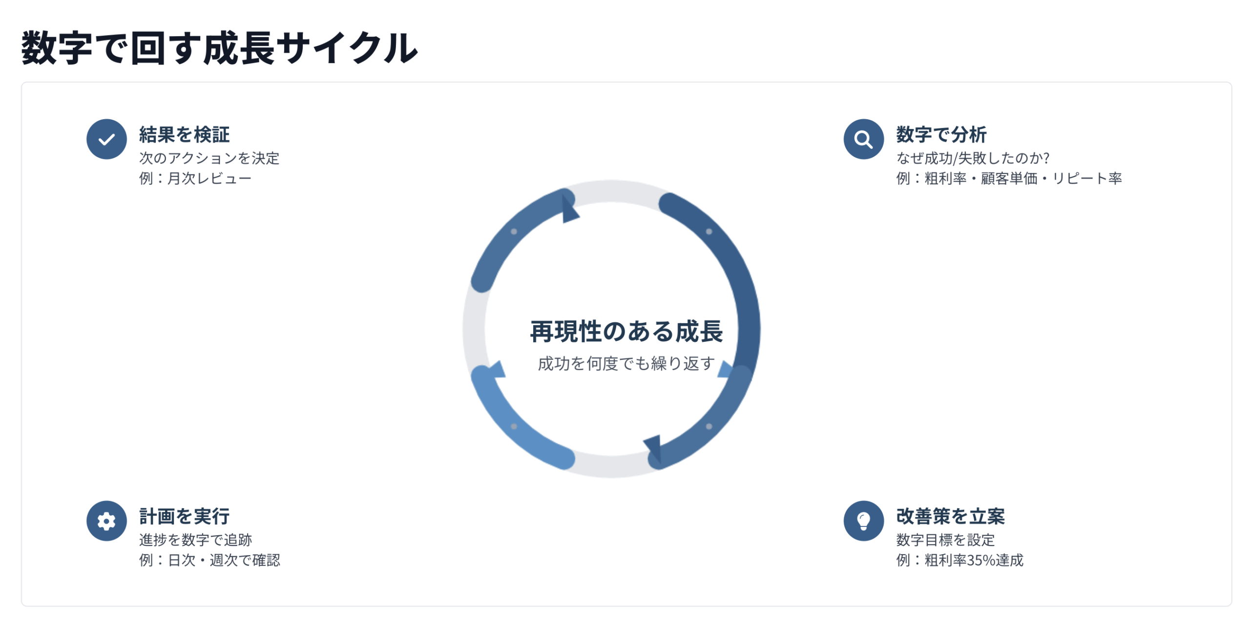 しかし、その感覚を「数字」で裏付けることで、経営は「運任せ」から「計画的」に変わります。そして、それこそが再現性のある成長の本質なのです。