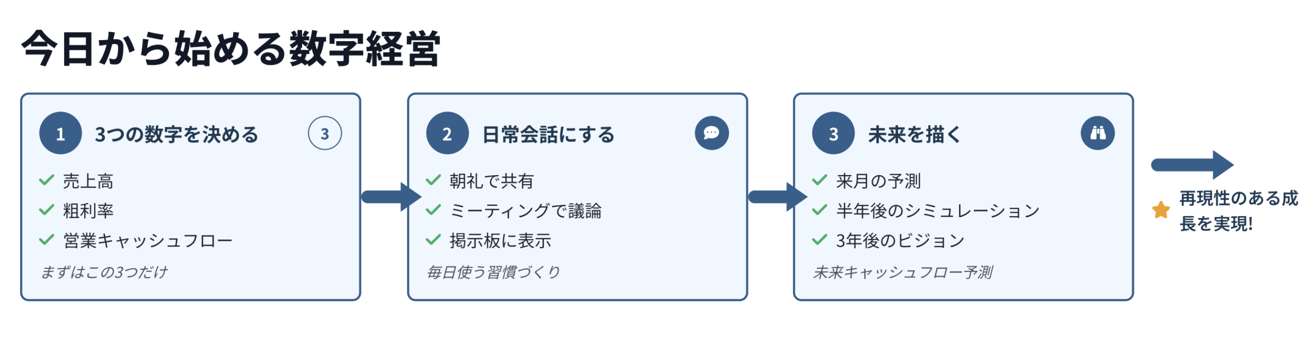 数字を「特別なもの」ではなく、「日常のもの」にする。これが、数字経営を根付かせる秘訣です。